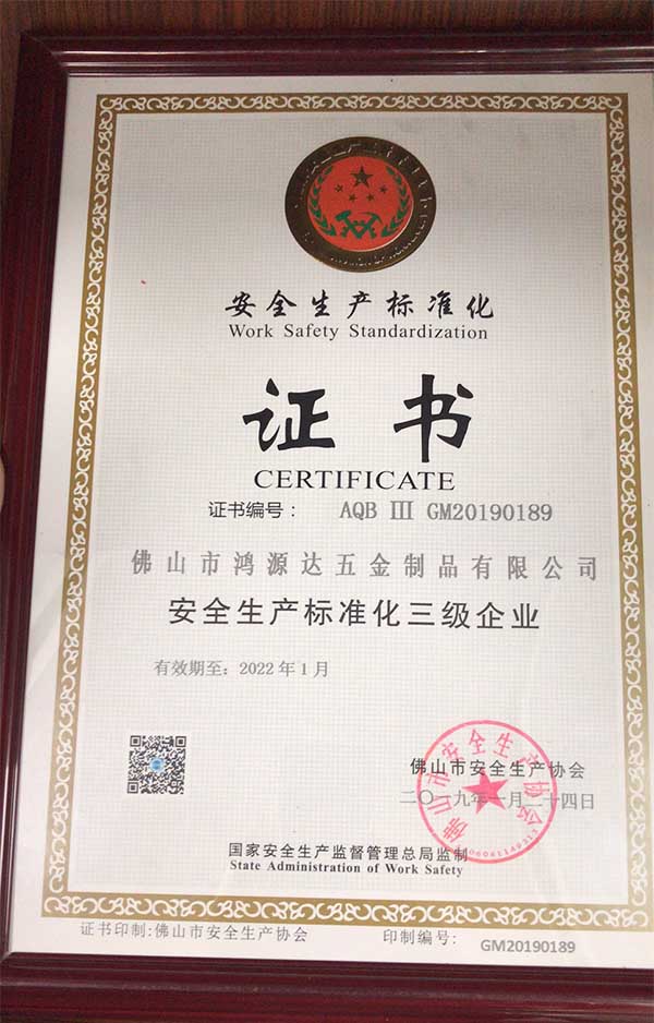 公司一直以誠(chéng)信、實(shí)力、質(zhì)量的高要求獲得業(yè)界的認(rèn)可,鴻源達(dá)一直以“客戶至上、信譽(yù)第一、精益求精、優(yōu)質(zhì)服務(wù)”為經(jīng)營(yíng)理念持續(xù)長(zhǎng)期發(fā)展,正是因?yàn)楦邩?biāo)準(zhǔn),高要求,鴻源達(dá)五金制品廠受到了廣大客戶的一致認(rèn)可與好評(píng)。
